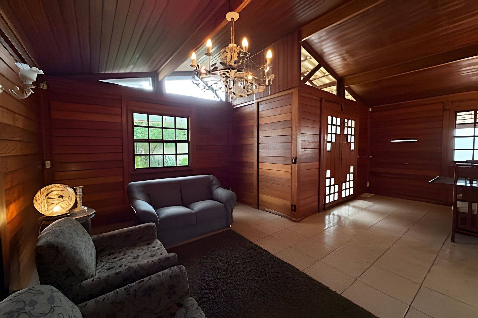 O chalé é exclusivo para os hóspedes, garantindo privacidade durante a estadia. Ele está localizado em uma propriedade que possui outro imóvel ao fundo. O acesso à propriedade é compartilhado, porém os espaços são independentes e o chalé é de uso exclusivo dos hóspedes.